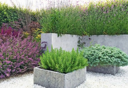 W aranżacjach ogrodowych do najbardziej efektownych należą elementy z betonu architektonicznego. Wykonuje się je w odpowiednio przygotowanym deskowaniu, które ma decydujący wpływ na to, jak będzie wyglądała powierzchnia donicy, kwietnika, ławki, murku czy przęseł ogrodzeniowych. Unikalny efekt dekoracyjny może wynikać z mniej lub bardziej bogatej struktury. Najczęściej tworzy on fakturę z wyraźnie widocznymi na gładkim tle charakterystycznymi porami i wżerami. Z betonu dekoracyjnego wykonuje się zazwyczaj wyeksponowane elementy o bardzo prostych, minimalistycznych, niekiedy nieco monumentalnych formach. W dużej mierze są one inspirowane geometrią – to między innymi wysokie donice w kształcie stożka lub sześcianu, proste murki, płyty chodnikowe czy też budzące skojarzenia z bryłami ławki lub większe konstrukcje łączące w sobie różne funkcje, na przykład siedzisk, kwietników i ścianek.