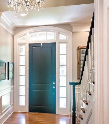 Pomalowanie jednej z płaszczyzn we wnętrzu to najłatwiejszy sposób na wprowadzenie modnego koloru. Producenci farb oferują uniwersalne farby do ścian i sufitów, jak i produkty specjalnego przeznaczenia – do kuchni i łazienek, do pokojów dziecięcych oraz sypialni. Przykładowe nazwy odcieni niebieskiego to Chabrowa polana, Lodowy błękit, Lazurowe wybrzeże, Naturalny turkus, Wodny masaż, Wiosenny deszczyk, Sekretne wyznanie, Relaksacyjna kąpiel, Szept nocy, Błękitny topaz, Tajemnica szafiru czy Klon srebrzysty. Dobierając farby na ściany, kierujmy się zasadą, aby mocniejsze i ciemniejsze tonacje ograniczyć do mniejszych płaszczyzn, np. jednej ściany lub wręcz jej fragmentu. Szczególnie ryzykowne jest łączenie szarych niebieskości z innymi kolorami zimnymi. Jedna niebieska ściana może być doskonałą bazą dla mebli drewnianych, białych i beżowych. Uważajmy też z niebieskim w dużych pomieszczaniach – mogą się one stać zbyt ponure! Dla zrównoważenia warto wtedy wprowadzić ciepłą barwę np. żółty, pomarańcz lub tonację o tej samej intensywności. Kontrasty to łatwy i zarazem sprawdzony sposób na nadanie wnętrzom oryginalności. Niebieski w towarzystwie czystej bieli będzie wydawał się żywszy i wniesie powiew świeżości. Jednak zestawienie z mocną czerwienią może już nadmiernie męczyć wzrok. By uzyskać za pomocą niebieskiego również efekt ciepła, warto sięgnąć po materiały kojarzone z miękkością i przytulnością, np. aksamitną tapicerkę, która doda wnętrzu luksusu oraz ociepli najzimniejszy loft! Błękitna stolarka okienna i drzwiowa z kolei naturalnie połączy dom z zewnętrzną przestrzenią.