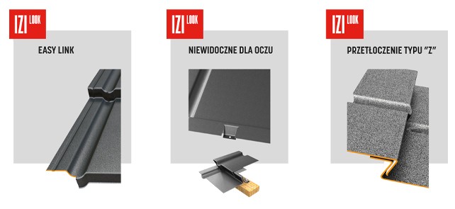 A tych jest dużo. Oprócz montażu klasycznego - IZI ROOF, dostępna jest opcja pokrycia, gdzie niewidoczne są elementy mocujące - IZI LOOK