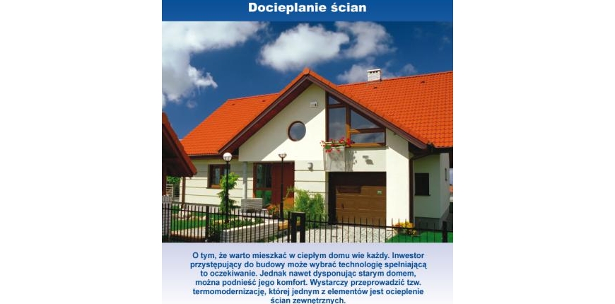 O tym, że warto mieszkać w ciepłym domu wie każdy. Inwestor przystępujący do budowy, może wybrać technologię spełniającą to oczekiwanie. Jednak, nawet dysponując starym domem, można podnieść jego komfort. Wystarczy przeprowadzić tzw. termomodernizację, której jednym z elementów jest ocieplenie ścian zewnętrznych.