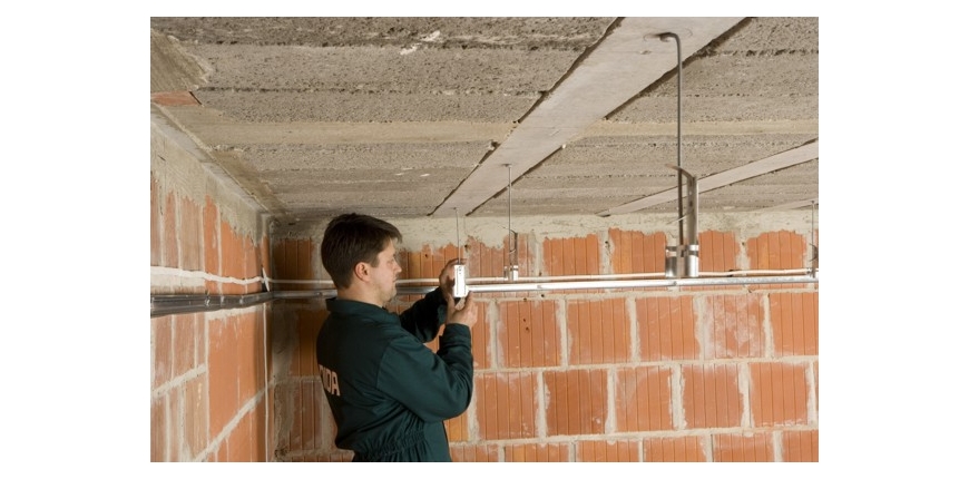 Prace przy montażu sufitu podwieszanego rozpoczynamy od wytrasowania powierzchni ścian, do których zakotwiony będzie profil przyścienny.